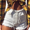 Pure Yellow Burr Banding Denim Shorts Cotton Jeans Shorts For Women Summer Sexy Lace Up Denim Tassel Hot Shorts